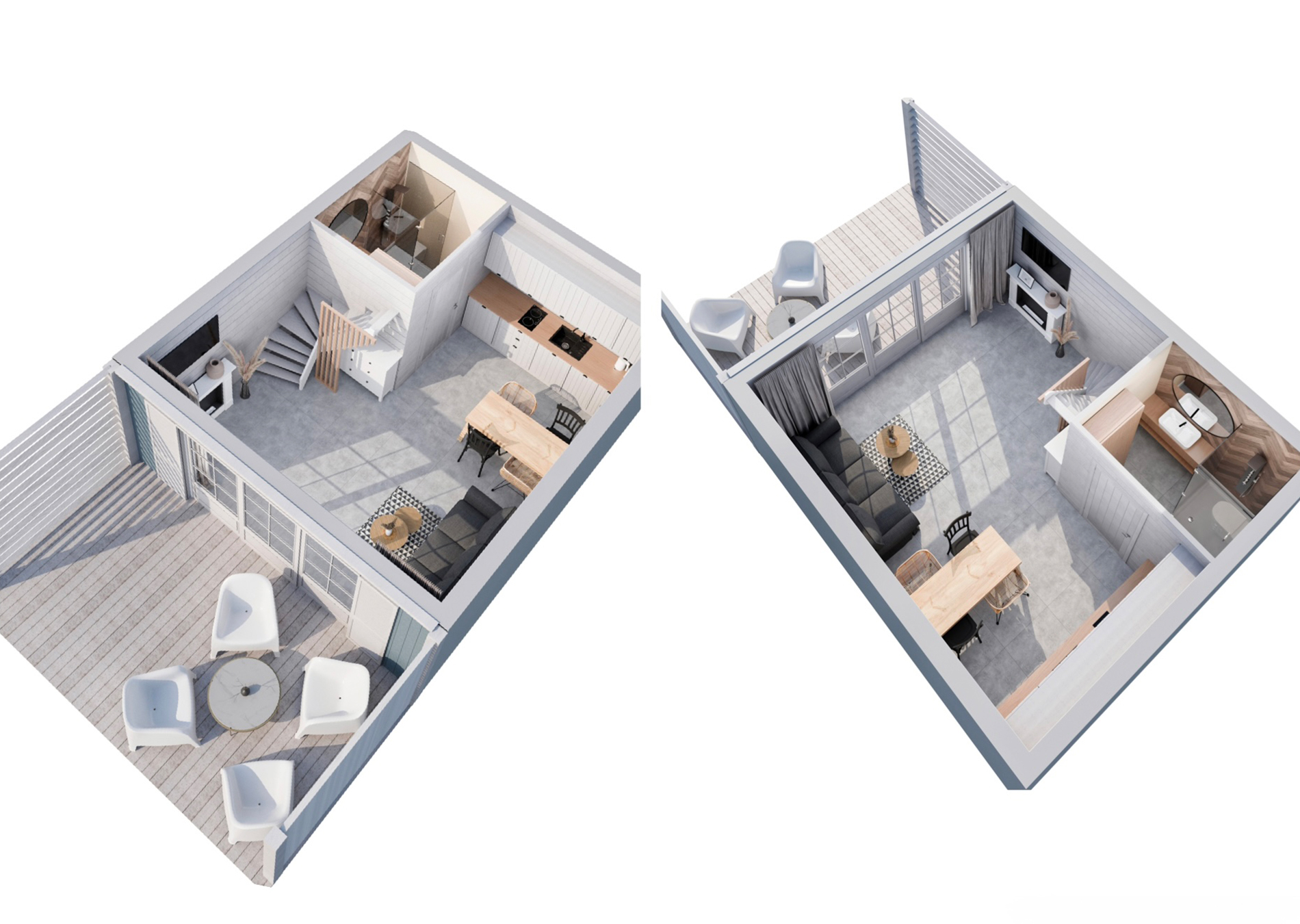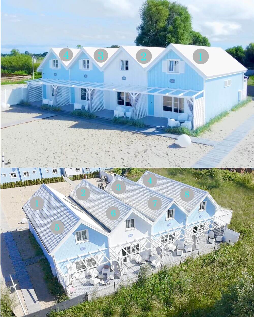 - domy stylowo zaprojektowane w stylu BOHO / COASTIAL sprzedawane są w pełni wyposażone i umeblowane – gotowe do użytku/wynajmu.